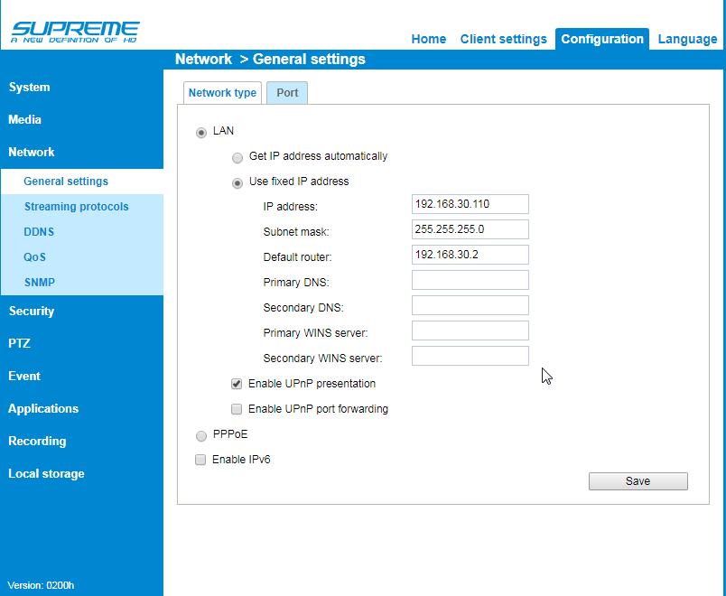 Set camera to Static IP Address ( VIPER Default Address for IP Cam/POE is 192.168.30.xxx)
