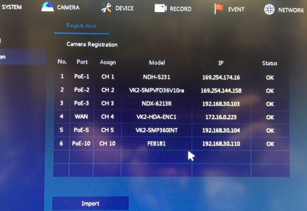 Go to Camera Registration and manually add the camera using the static IP Address that was set on