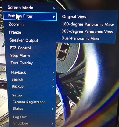 Once this is done double click the camera so the camera is full screen, Then right click and the fisheye filter option